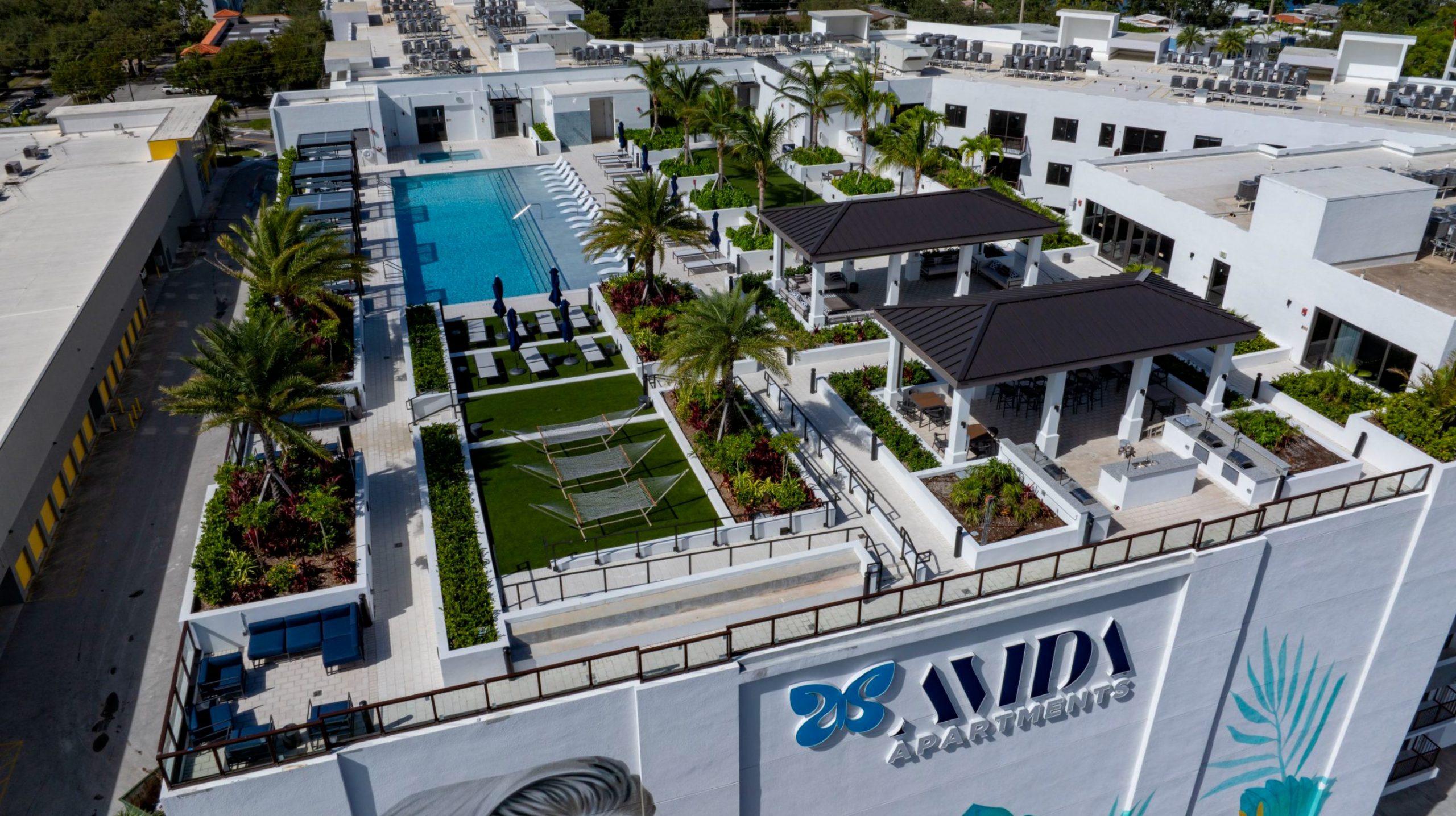 AVIDA is a family-friendly community in Aventura featuring a sauna, steam room, spa, Zen studio, rooftop terrace, and modern fitness center.