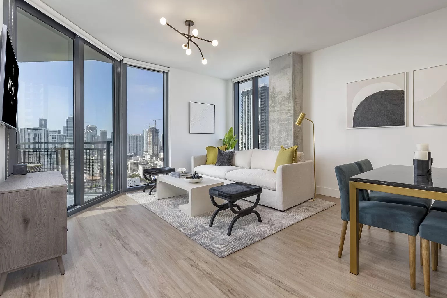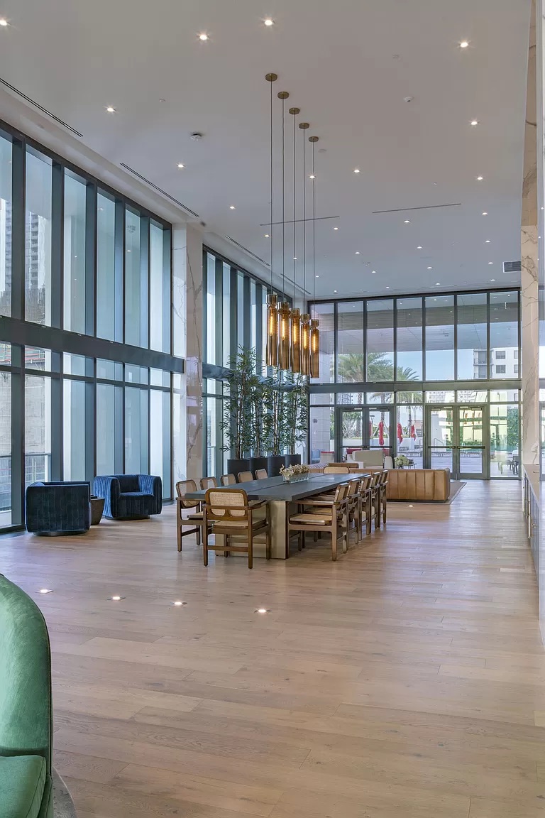 Contemporary residences feature upscale finishes, floor-to-ceiling windows, and a sleek design that epitomizes downtown living at its finest.