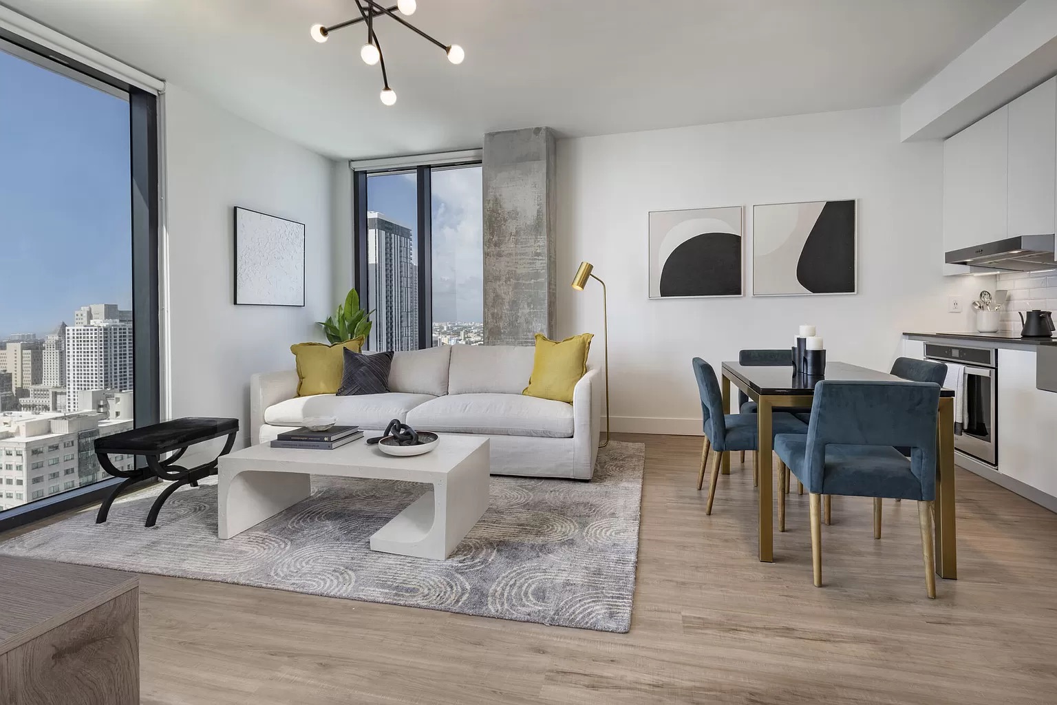 Contemporary residences feature upscale finishes, floor-to-ceiling windows, and a sleek design that epitomizes downtown living at its finest.